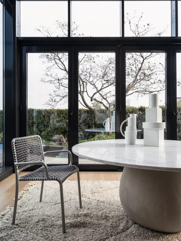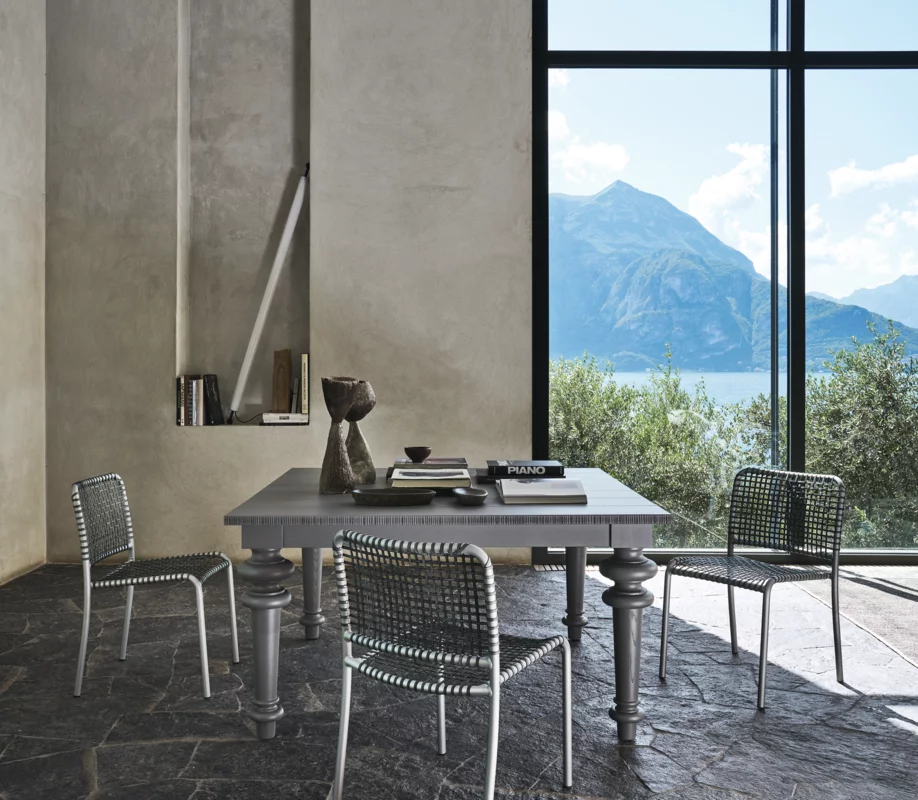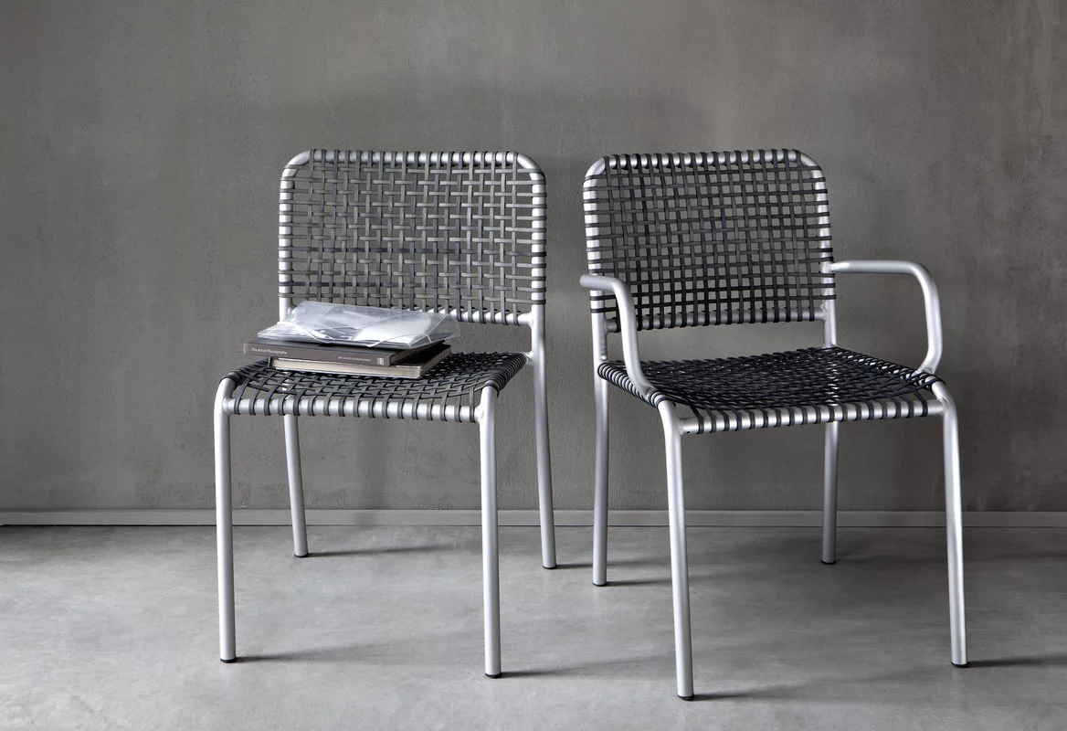 Allu es una silla versátil y confortable que fusiona la ligereza y esencialidad del armazón de tubo de aluminio anodizado con una interacción dinámica de texturas, generada por el entramado de pergamino natural o gris. Capaz de integrarse en diversos entornos, desde el doméstico hasta el corporativo, Allu es un producto distinguido por su diseño depurado y sus formas básicas y geométricas.