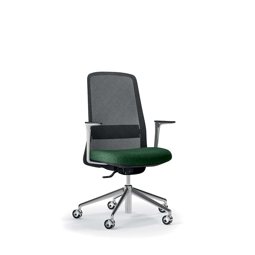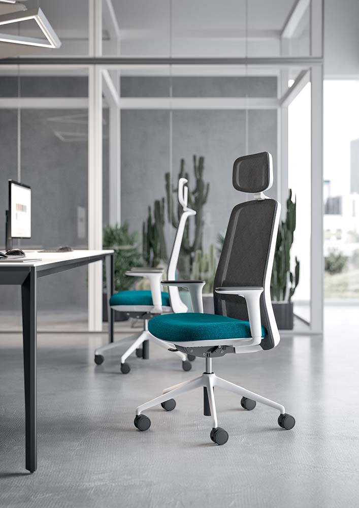 La silla operativa de oficina elegante y ergonómica que ofrece energía y bienestar en tu día laboral. Presenta formas suaves y un alma refinada, perfecta para diversos entornos profesionales. Con opciones de respaldo bajo o alto con reposacabezas, y personalización en acabados de tejido y malla, garantiza confort con un soporte lumbar ajustable.